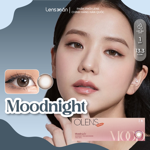 Ánh nâu vàng đồng, nhẹ nhàng, tinh khôi, với viền dày + độ giãn G.DIA 13.5mm tạo hiệu ứng filter như búp bê. Thuộc dòng OLENS 1 ngày nên rất tiện khi chỉ cần dùng trong dịp đặc biệt.