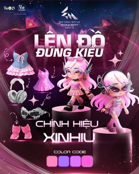 Nếu bạn sắp tham dự Concert Em Xinh Say Hi – Đêm 2, đừng bỏ qua dresscode “Chính hiệu XinhIU” đang khiến cộng đồng fan xôn xao. Concept năm nay mang tinh thần năng động – ngọt ngào – nổi bật, lấy cảm hứng từ gam màu hồng tím pastel xen chút ánh bạc, tạo nên phong cách vừa dễ thương vừa cá tính.
