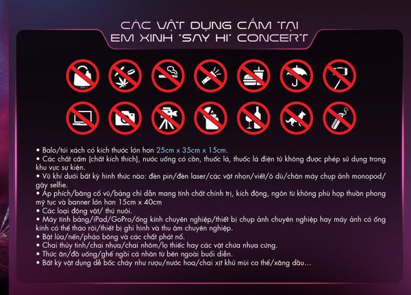 Những vật dụng không được mang vào concert “Em Xinh Say Hi”