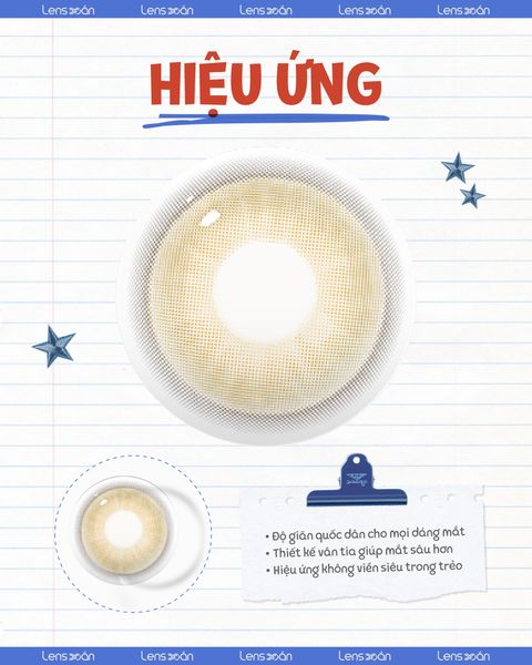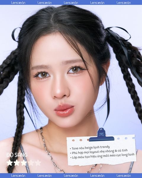 Hiệu ứng ánh nhìn trong trẻo, long lanh Lens mang ánh nâu mật ong trong suốt, giúp mắt bắt sáng tốt, tạo cảm giác long lanh, ngọt ngào nhưng vẫn giữ nét hiện đại.