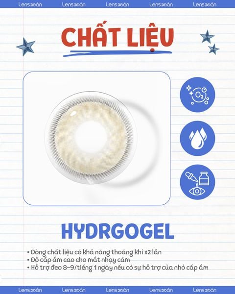 Chất liệu Hydrogel – Sự lựa chọn an toàn và êm dịu cho đôi mắt Hydrogel là một trong những chất liệu phổ biến nhất hiện nay trong sản xuất kính áp tròng nhờ khả năng cấp ẩm cao và độ mềm mại vượt trội . Với công nghệ hiện đại, dòng lens Hydrogel được xem là lựa chọn lý tưởng cho những bạn có đôi mắt nhạy cảm, dễ khô hoặc thường xuyên đeo lens trong thời gian dài.