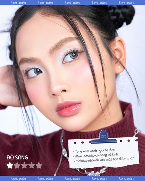 Màu sắc - tone xám ánh xanh ngọc lạ mắt COCO MIO Gray gam màu xám ánh xanh ngọc cực kỳ lạ mắt. Màu lens trong veo, tạo hiệu ứng như có lớp highlight nhẹ giúp đôi mắt sáng và long lanh hơn. Điểm mạnh của COCO MIO Gray là khả năng kết hợp giữa sự tự nhiên và cá tính . Gam xám ánh xanh sáng nhẹ, không làm mắt trở nên sắc lạnh, mà ngược lại mang đến nét trong trẻo, mới lạ. Khi nhìn trực diện, đôi mắt toát lên sự thu hút nhẹ nhàng, còn khi bắt sáng, hiệu ứng ánh xám xanh ngọc khiến ánh nhìn long lanh và cuốn hút hơn hẳn.