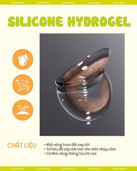 Silicone Hydrogel còn nổi bật ở khả năng giữ nước ổn định , giúp mắt lúc nào cũng mềm mịn, không bị khô căng kể cả khi đeo cả ngày. Đồng thời, chất liệu này có hiệu quả chống tia UV , hỗ trợ bảo vệ giác mạc khỏi ánh sáng mặt trời, một ưu điểm hữu ích cho các bạn hay hoạt động ngoài trời.