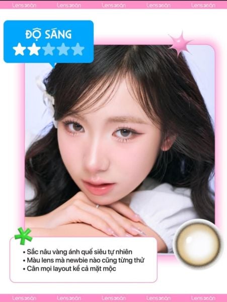 Không phải tự nhiên mà em này trở thành best-seller tại nhiều cửa hàng lens Hàn Quốc và Việt Nam. Lens có tông nâu mật ngọt thanh thoát, khi lên mắt tạo hiệu ứng tự nhiên như màu mắt thật nhưng vẫn khiến ánh nhìn trở nên ấm áp, trong sáng hơn rõ rệt.