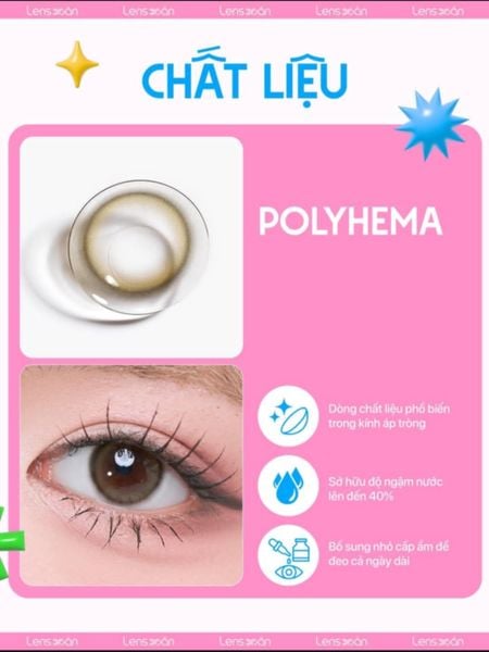 Chất liệu đeo êm nhẹ, có bản dùng 1 ngày và 6 tháng Điểm cộng lớn của lens nằm ở chất liệu Polyhema với độ ngậm nước 40% – giúp mắt không bị khô, đeo lên mắt cảm giác cực mềm. Mọi chuyển động mắt đều rất linh hoạt, không cộm, không nặng mi, cực kỳ phù hợp cho những ai cần đeo lens cả ngày.
