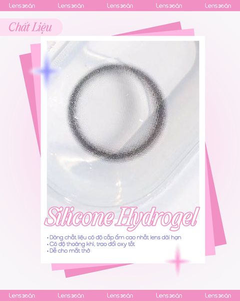 Silicone Hydrogel được xem là một trong những chất liệu tiên tiến nhất trong ngành kính áp tròng hiện nay, nổi bật nhờ khả năng dẫn truyền oxy vượt trội và độ ẩm cao , giúp mắt luôn thông thoáng và hạn chế tình trạng khô, đỏ hay mỏi khi phải đeo lens trong thời gian dài, đặc biệt là ở môi trường điều hòa hoặc dưới ánh đèn mạnh.