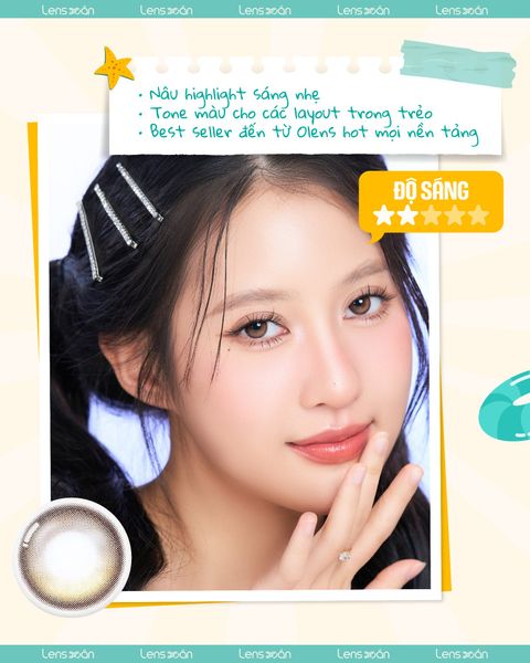 GLOWY BROWN – Đôi mắt ngọt ngào và tỏa sáng trong khoảnh khắc đáng nhớOLENS là thương hiệu lens Hàn Quốc hàng đầu, nổi tiếng với khả năng tôn ánh nhìn một cách tự nhiên nhưng vẫn giữ được chiều sâu và sự tinh tế trong từng thiết kế. Với chất liệu lens cấp ẩm, độ ẩm ổn định và hiệu ứng thị giác trong trẻo, OLENS luôn được yêu thích bởi những cô nàng đề cao sự chỉn chu, đặc biệt ở những dịp đặt biệt về ngoại hình như cưới hỏi, sự kiện hay buổi chụp hình quan trọng. Chính sự kết hợp giữa chất lượng – an toàn – thẩm mỹ và khả năng “tôn vibe” rõ rệt đã giúp OLENS trở thành lựa chọn tin cậy của nhiều ngôi sao lẫn giới trẻ.