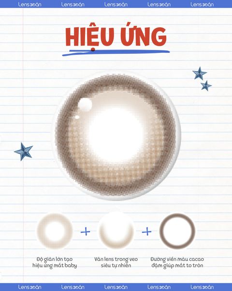 Lens BIG CACAO : Sự lựa chọn số 1 cho học sinh, sinh viên khi đi học Nếu bạn đang tìm một mẫu lens vừa tự nhiên, vừa phù hợp để đi học hằng ngày thì BIG CACAO của nhà MyFipn chính là lựa chọn số 1. Với tone nâu cacao dịu nhẹ, mẫu lens này mang đến cảm giác trong trẻo, dễ thương mà vẫn giữ được sự tinh tế và an toàn cho đôi mắt. Không chỉ giúp đôi mắt sáng hơn mà BIG CACAO còn là “vũ khí” giúp bạn tự tin hơn trong môi trường học đường mà không lo bị quá lộ hay gượng gạo.