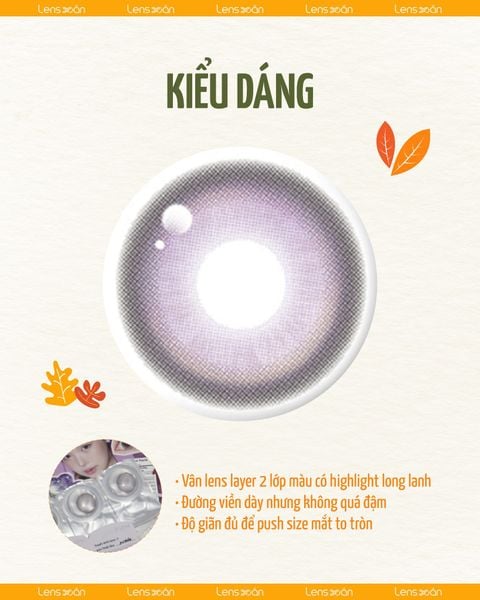 Với thông số GDIA 13.5mm và DIA 14.2mm , Poble Purple mang lại độ giãn vừa phải, tạo hiệu ứng đôi mắt tròn xinh, cân đối mà vẫn giữ được sự hài hòa. Dù là makeup nhẹ nhàng hàng ngày hay phong cách cá tính hơn, Poble Purple vẫn dễ dàng “ăn nhập”, khiến ánh nhìn nàng luôn tỏa sáng.