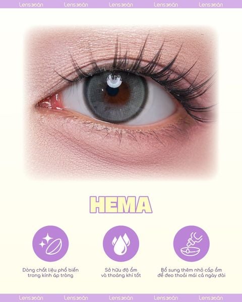 Với khả năng giữ ẩm vừa phải, chất liệu này giúp hạn chế khô rát khi sử dụng nhiều giờ. Độ thoáng khí tốt cũng giúp bề mặt mắt thoải mái hơn. Vì ưu tiên sự mềm mại nên HEMA sẽ càng dễ chịu hơn khi đi kèm nước ngâm , nhỏ cấp ẩm chuyên dụng dành cho lens và phụ kiện vệ sinh đi kèm — giúp bạn đeo lens tươi tắn suốt cả ngày dài, kể cả khi đi học đi làm hay di chuyển nhiều.