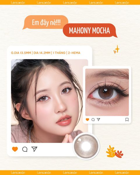Thiết kế: Sở hữu độ giãn ở mức khá lớn với G.DIA: 13.5 mm thế nhưng MAHONY MOCHA khi lên mắt không hề “lố” mà ngược lại cực trong trẻo bởi thiết kế đường viền siêu mảnh, kết hợp với hiệu ứng highlight đan xen nhau giúp đôi mắt ướt thêm long lanh.
