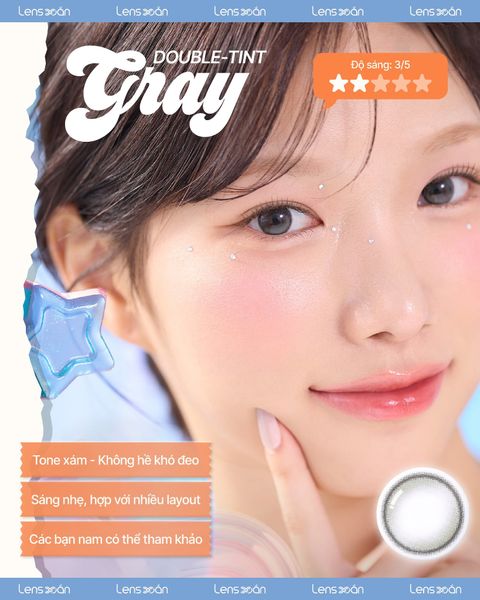 Màu lens sáng vừa phải với độ sáng 3/5, nhờ vậy có thể kết hợp hài hòa với nhiều layout makeup khác nhau từ ngọt ngào đến cá tính. Dù bạn chọn trang điểm nhẹ nhàng khi đi học, đi làm hay phong cách nổi bật khi đi chơi, DOUBLE TINT GRAY đều tạo được hiệu ứng phù hợp.