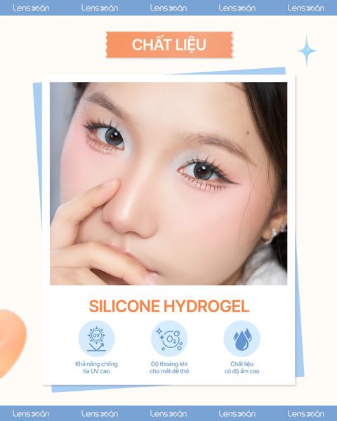 Ngoài khả năng truyền khí tốt, Silicone Hydrogel còn có độ ngậm nước cao , giữ ẩm hiệu quả để mắt luôn duy trì cảm giác dễ chịu, mềm mại. Dù bạn phải làm việc trong môi trường điều hòa hay di chuyển ngoài trời, đôi mắt vẫn được bảo vệ tối ưu. Đặc biệt, chất liệu này còn được tích hợp tính năng chống tia UV , góp phần ngăn ngừa các tác hại từ ánh nắng và bảo vệ sức khỏe thị giác lâu dài.