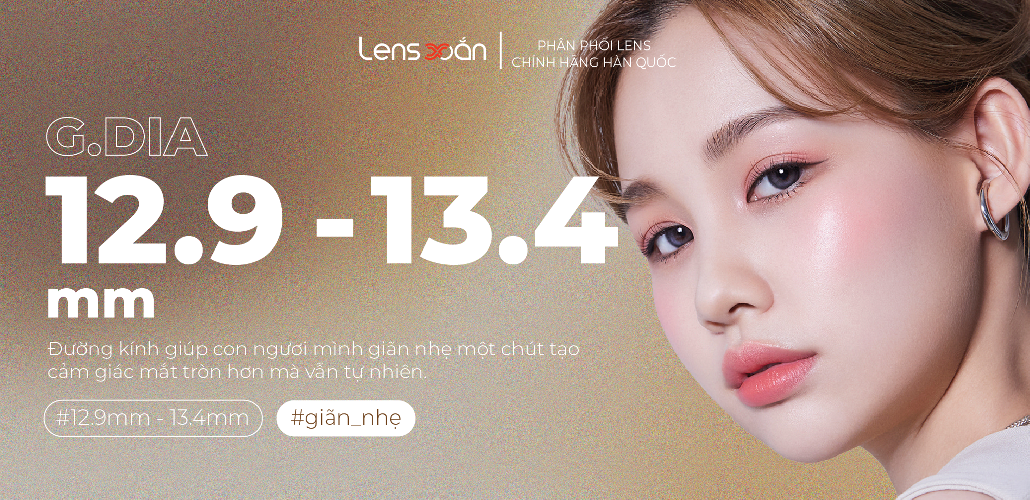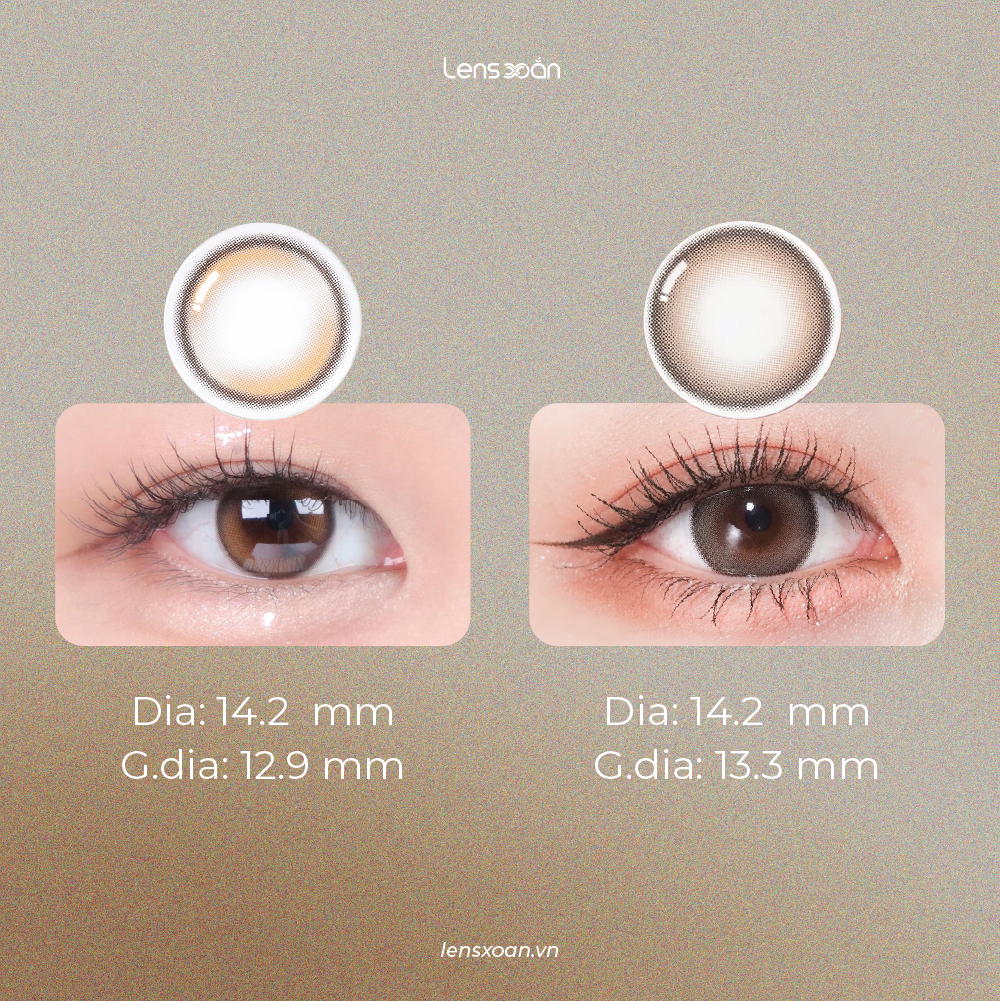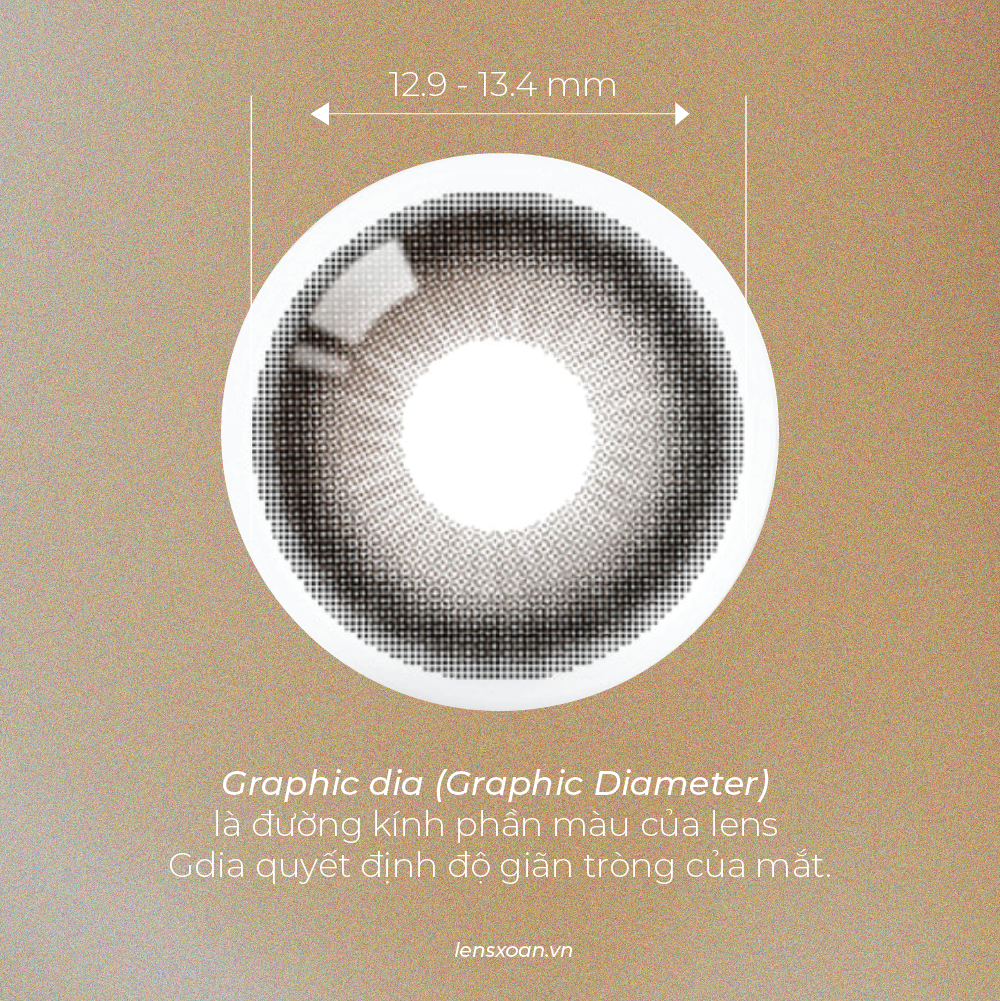 quyết định độ giãn tròng của mắt. Gdia 12.9mm - 13.4mm giúp con ngươi mình giãn nhẹ một chút tạo cảm giác mắt tròn hơn mà vẫn tự nhiên.