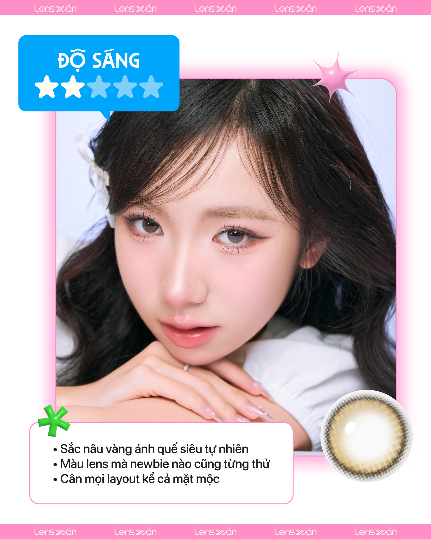 Mùa lễ hội cuối năm đã gõ cửa rùi, đổi vibe cho đôi mắt thêm trầm ấm với tone nâu mới toanh cập bến nhà Lens Xoắn với sự ra mắt của tân binh khủng 6 tháng 𝐄𝐘𝐄𝐈𝐒 𝐂𝐎𝐋𝐋𝐄𝐂𝐓𝐈𝐎𝐍. Ngay từ packaging xanh pastel tựa như bông tuyết đầu mùa, 𝐄𝐲𝐞𝐢𝐬 𝐌𝐞𝐥𝐨 𝐁𝐫𝐨𝐰𝐧 chính là mẫu lens chân ái cho mùa Giáng sinh rộn ràng hứa hẹn sẽ làm say lòng các cô nàng ngay từ cái nhìn đầu tiên.