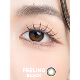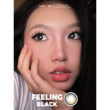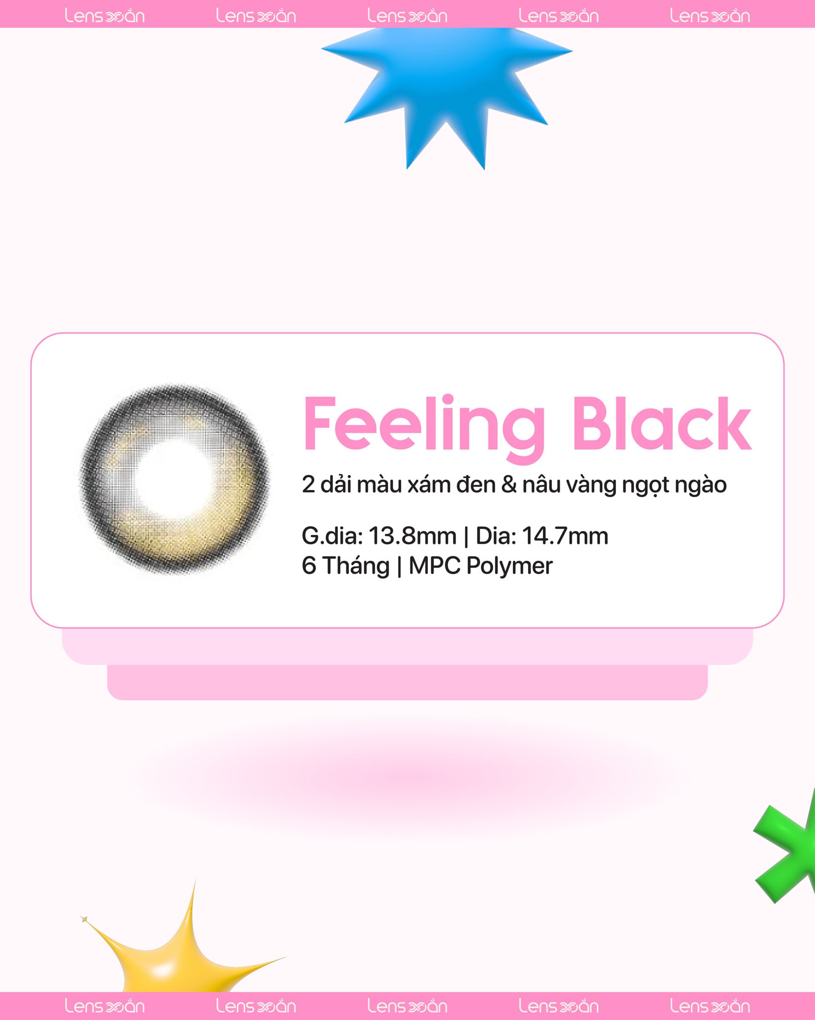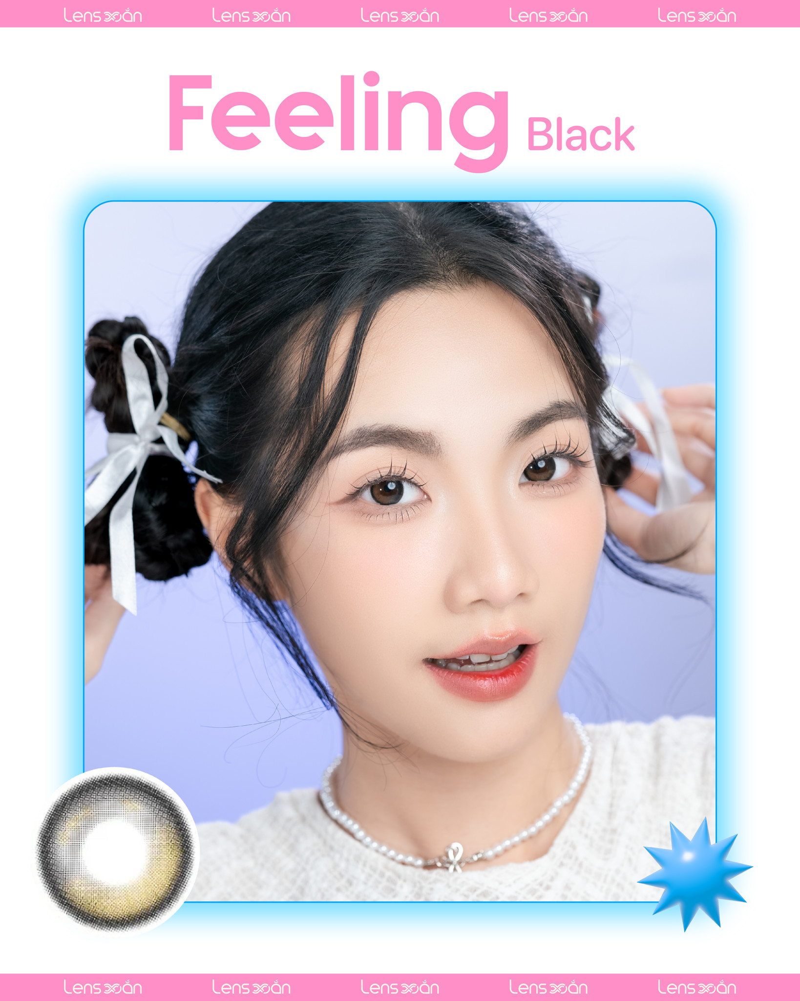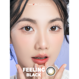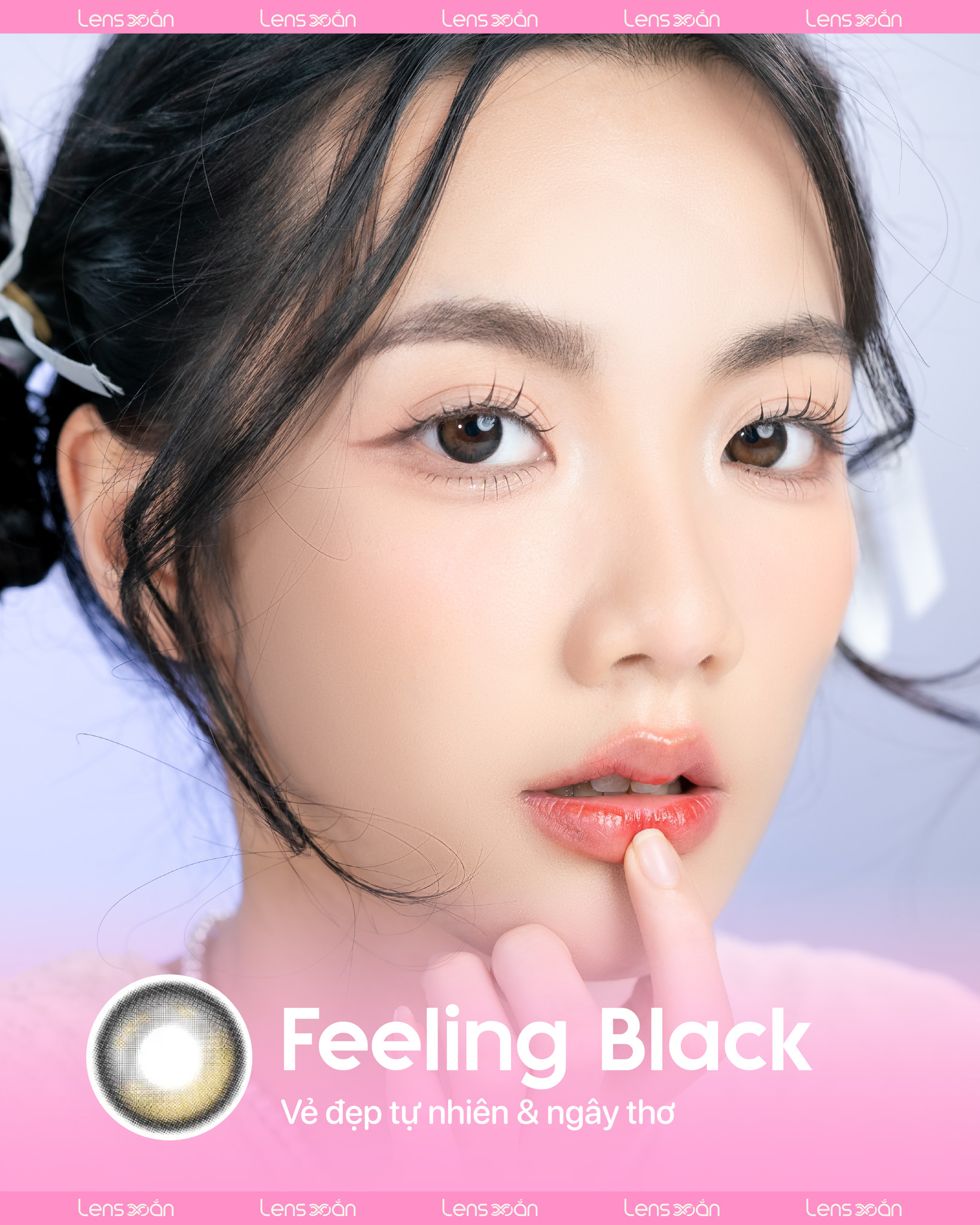Thêm một màu lens tự nhiên tựa bản dupe của Laboum Black nhưng ở phiên bản cấp ẩm cao hơn chính là Feeling Black . Sở hữu hai dải màu xám đen và ánh nâu bơ tan chảy mang lại cho cô nàng một giao diện siêu ngọt ngào mà vẫn cuốn hút. Mang thiết kế vân lens 2 dải màu thế nhưng Feeling Black không hề có đeo, độ sáng ở mức nhẹ nhàng phù hợp cho cả nam và nữ đều có thể tham khảo.
