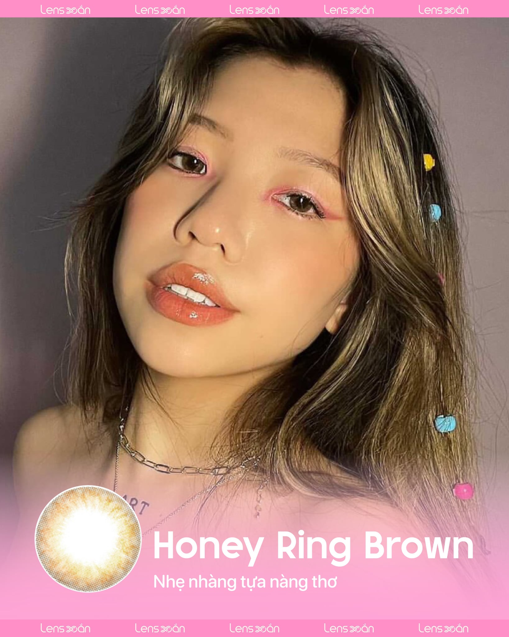Honey Ring Brown mang ánh nâu mật ong ngọt ngào trong veo cực kỳ tự nhiên và thu hút.