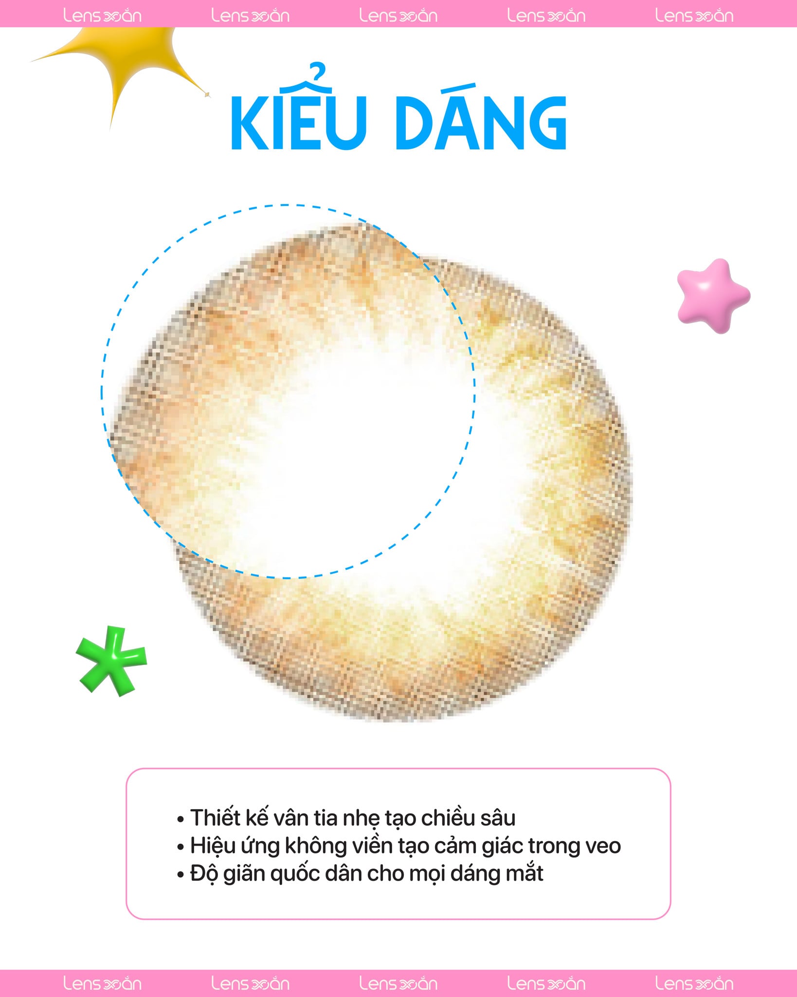 Với graphic dia 13.4, lens khi lên mắt sẽ có độ giãn nhẹ, tạo cảm giác tròn trịa cho đôi mắt.