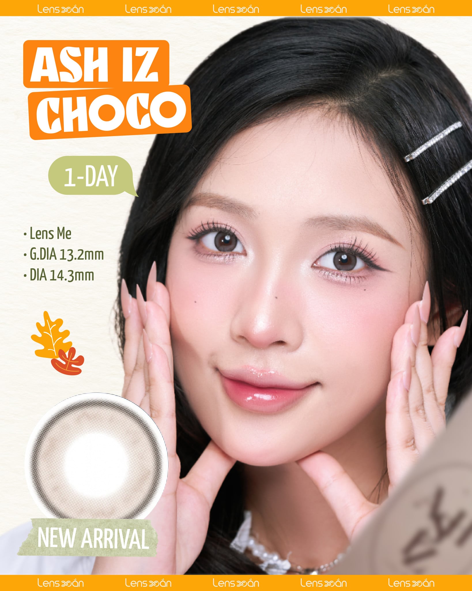 Ash Iz Choco là dòng kính áp tròng mang sắc nâu choco trong trẻo đầy ngọt ngào đến từ thương hiệu Hàn Quốc Lens Me , nổi bật với vẻ ngoài tự nhiên, trong suốt và cực kỳ dễ đeo hằng ngày.