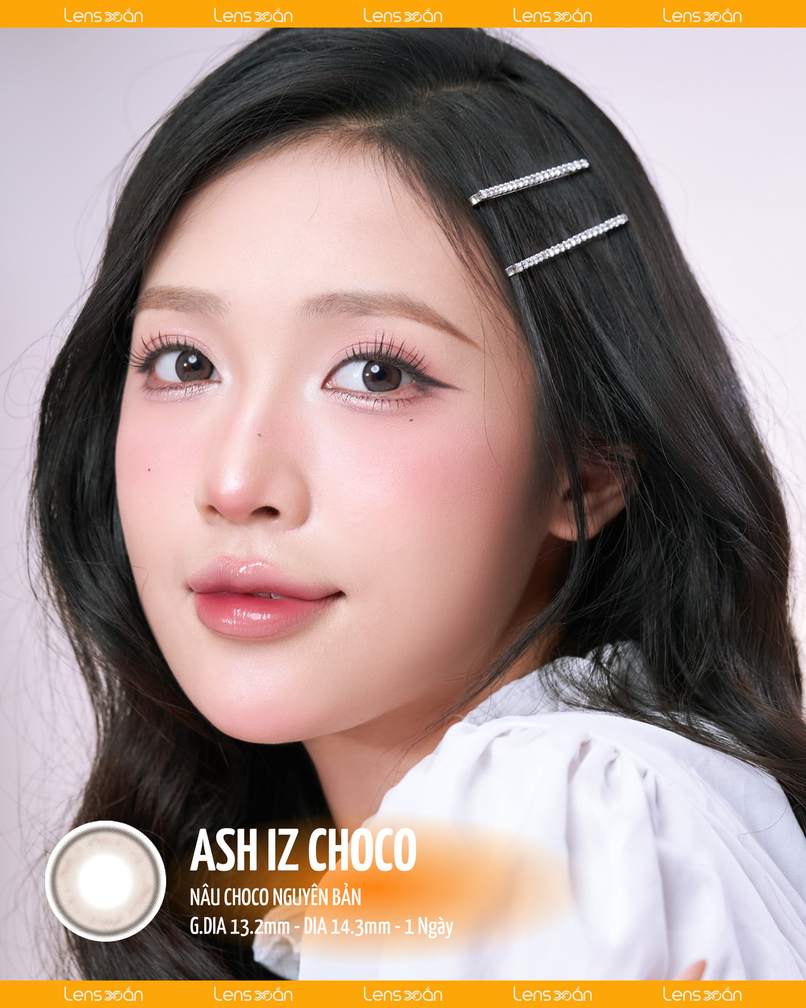 Ash Iz Choco là lựa chọn lý tưởng cho những cô nàng yêu phong cách "bánh bèo" nữ tính , thường xuyên makeup kiểu trong suốt Hàn Quốc, hoặc đơn giản là muốn sở hữu đôi mắt long lanh hơn mà không cần trang điểm quá nhiều. Đây là mẫu lens “quốc dân” bạn có thể tự tin đeo đi học, đi làm hay dạo phố mà vẫn giữ được vẻ đẹp tự nhiên chuẩn Hàn, thanh thoát và dễ thương không chút gượng ép.
