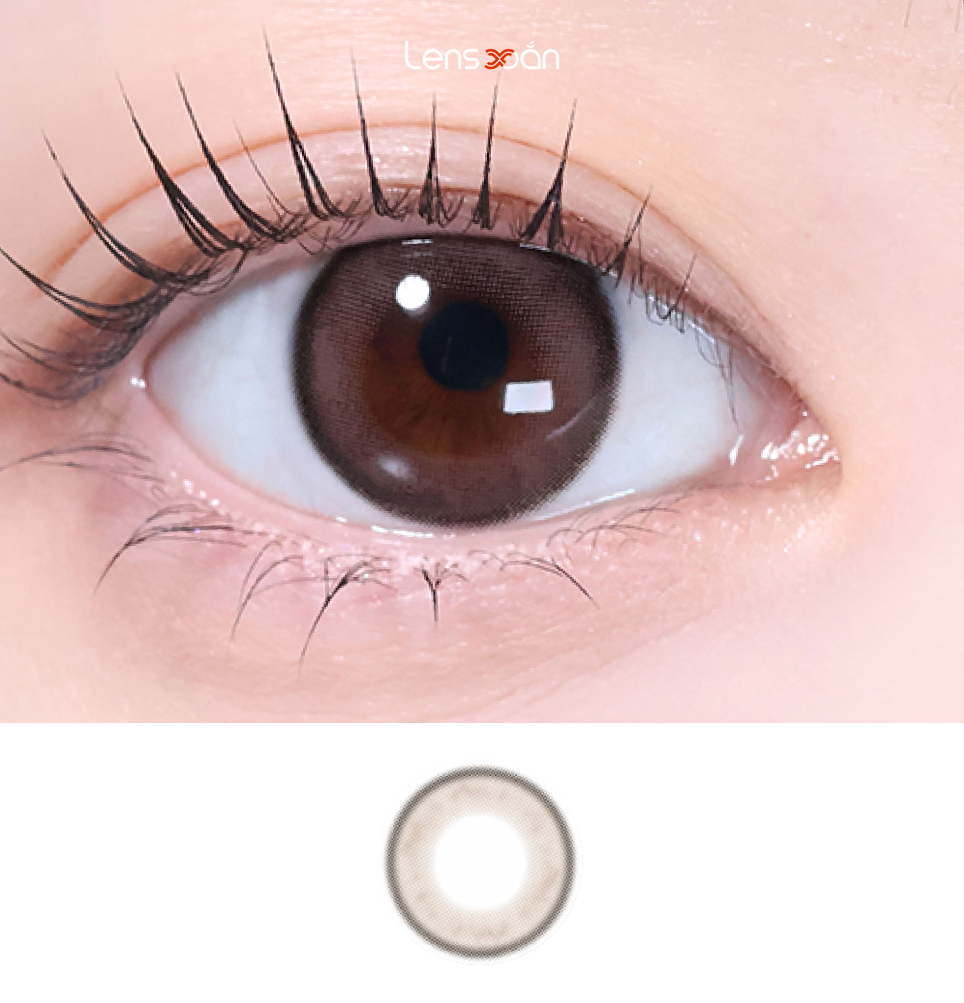 Màu nâu chocolate được pha cùng một lớp ánh khói nhẹ tạo chiều sâu vừa phải cho đôi mắt mà không làm mất đi vẻ mềm mại, dịu dàng vốn có. Thiết kế viền nhẹ tinh tế , giúp lens hòa vào tròng mắt một cách mượt mà, tạo hiệu ứng tự nhiên như không đeo lens – rất lý tưởng cho các bạn gái yêu phong cách nhẹ nhàng, dịu dàng mà vẫn muốn đôi mắt to tròn và trong veo.