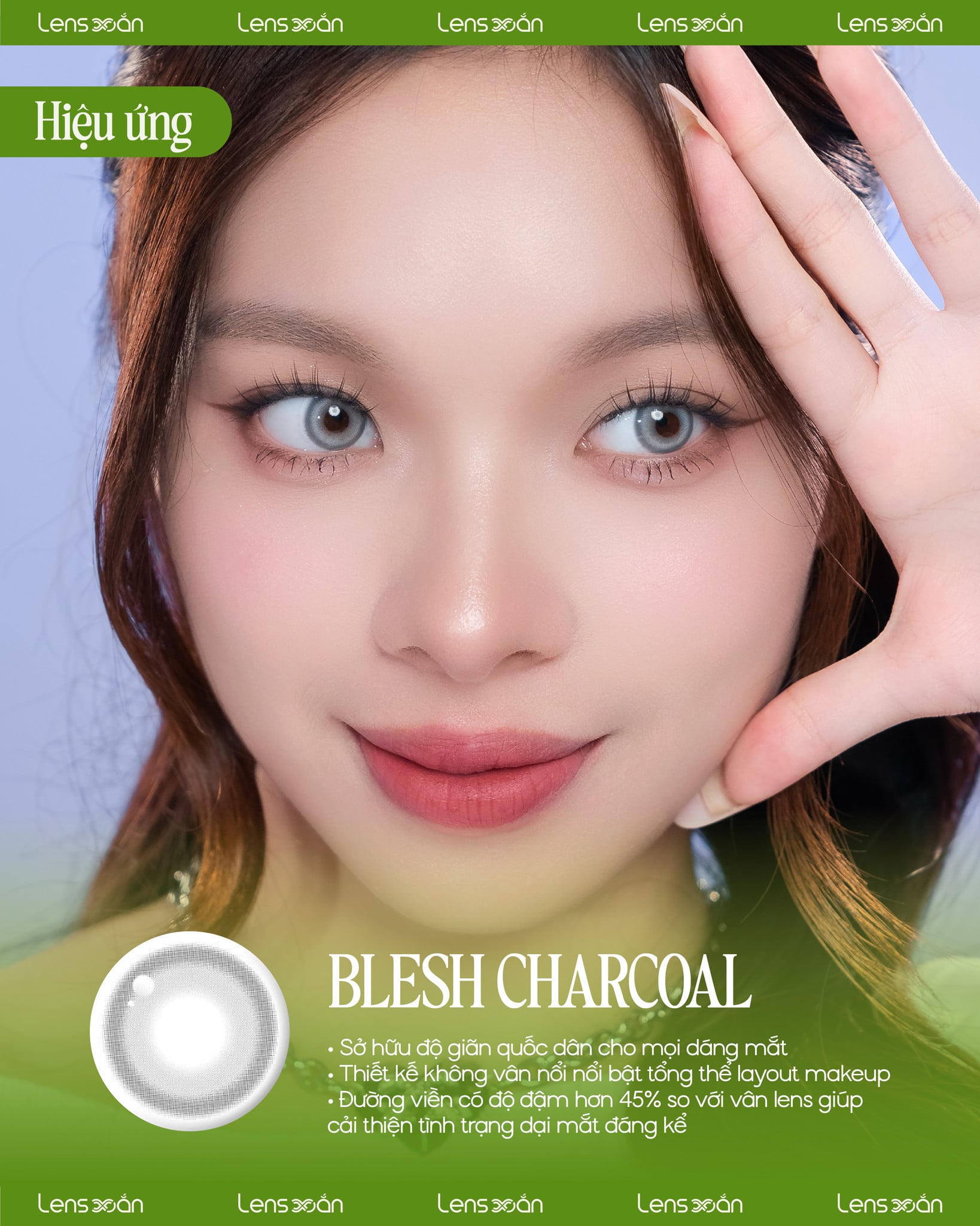 Blesh Charcoal được thiết kế với viền có độ đậm hơn 45% so với màu sắc chính, tạo hiệu ứng viền tự nhiên, kết hợp với sự chuyển màu vân lens nhẹ nhàng, uyển chuyển.