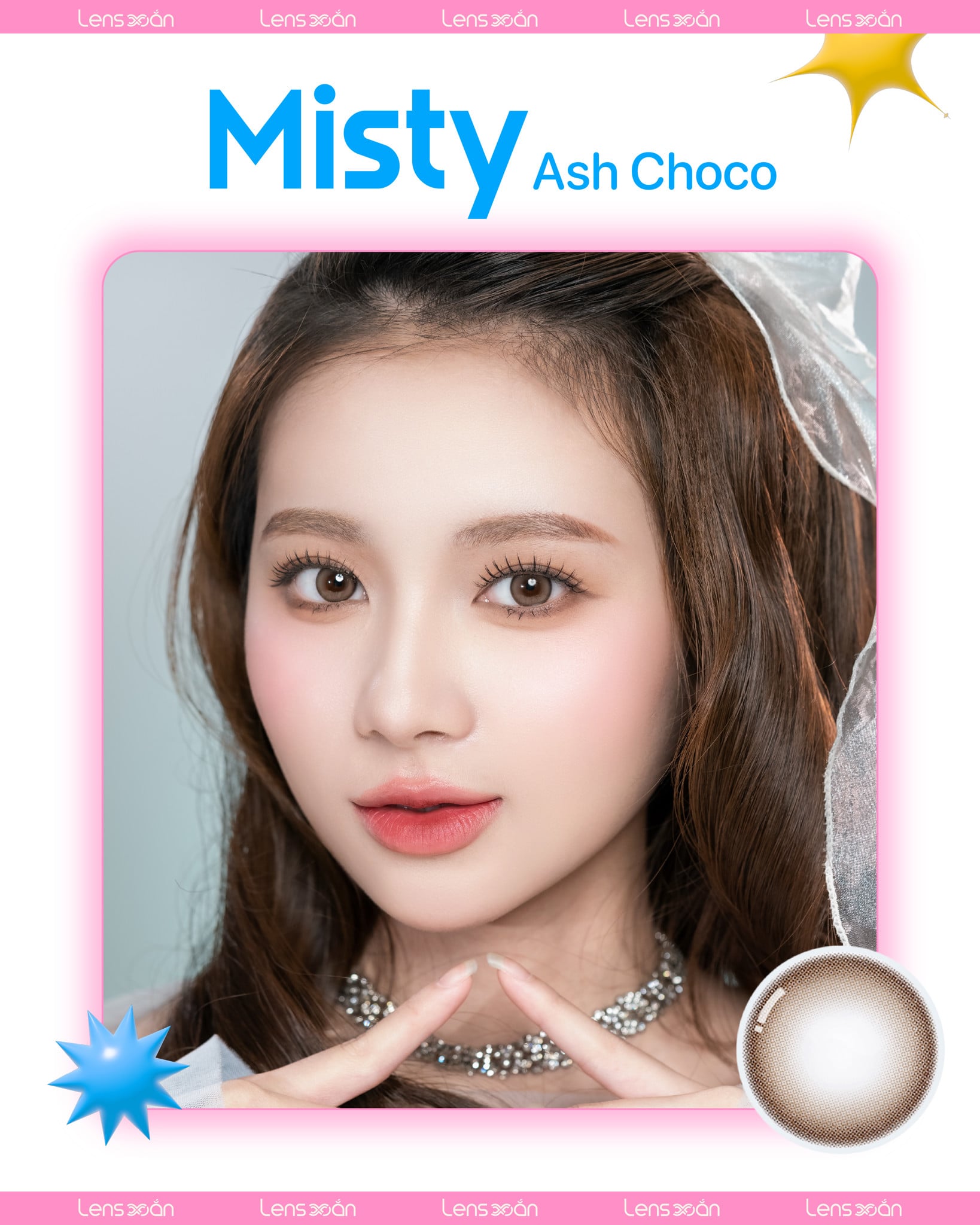 Nhẹ nhàng, tinh tế ngay từ ánh nhìn đầu tiên chính là cảm giác siêu thực mà mẫu lens mới toanh 𝑴𝒊𝒔𝒕𝒚 𝑨𝒔𝒉 𝑪𝒉𝒐𝒄𝒐 mang lại. Thiết kế chủ đạo với tone nâu choco đơn giản nhưng được chấm phá thêm bằng ánh khói lạ lẫm là hiệu ứng sương mờ độc đáo đón đầu xu hướng lens mùa đông năm nay.