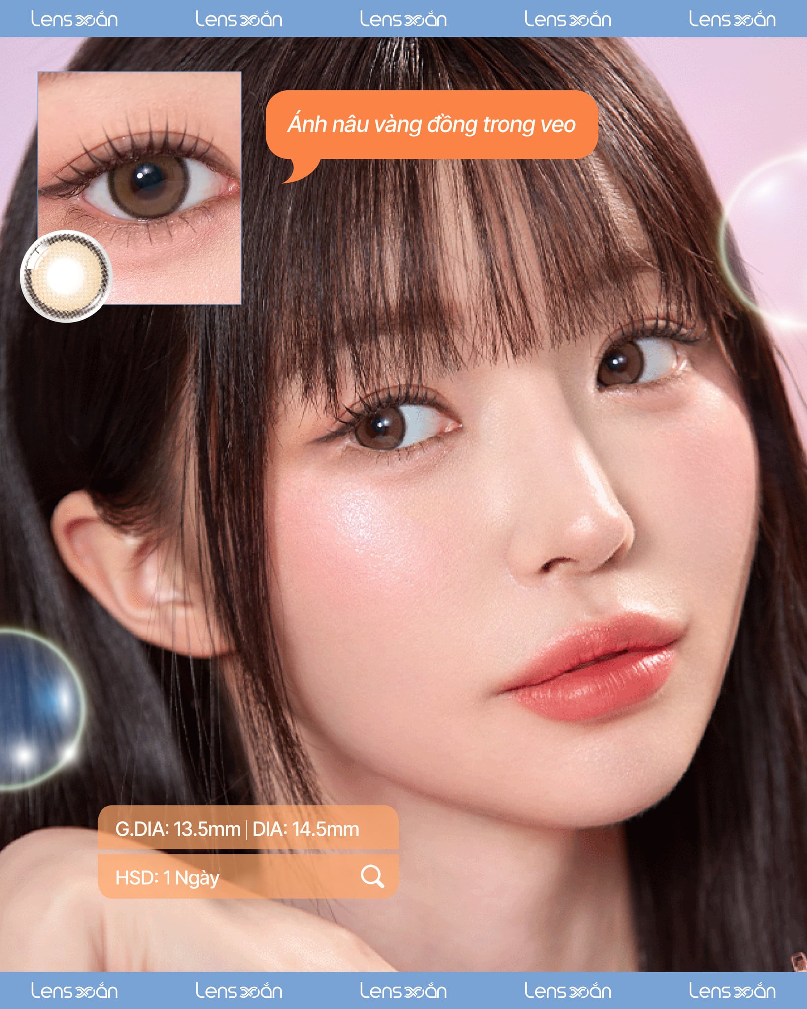 Tông Nâu Yến Mạch Trong Trẻo – Tỏa Sáng Nhẹ Nhàng Realish Brown sở hữu màu nâu yến mạch thanh thoát , mang đến vẻ đẹp trong veo, ngọt ngào như ánh nắng đầu ngày. Màu lens không quá đậm, không quá sáng, vừa đủ để tôn lên sắc mắt một cách tự nhiên và tinh tế. Viền mảnh nhẹ nhàng bao quanh giúp định hình ánh nhìn rõ hơn mà không hề lộ dấu hiệu đang đeo lens – phù hợp với cả makeup nhẹ lẫn mộc mạc.
