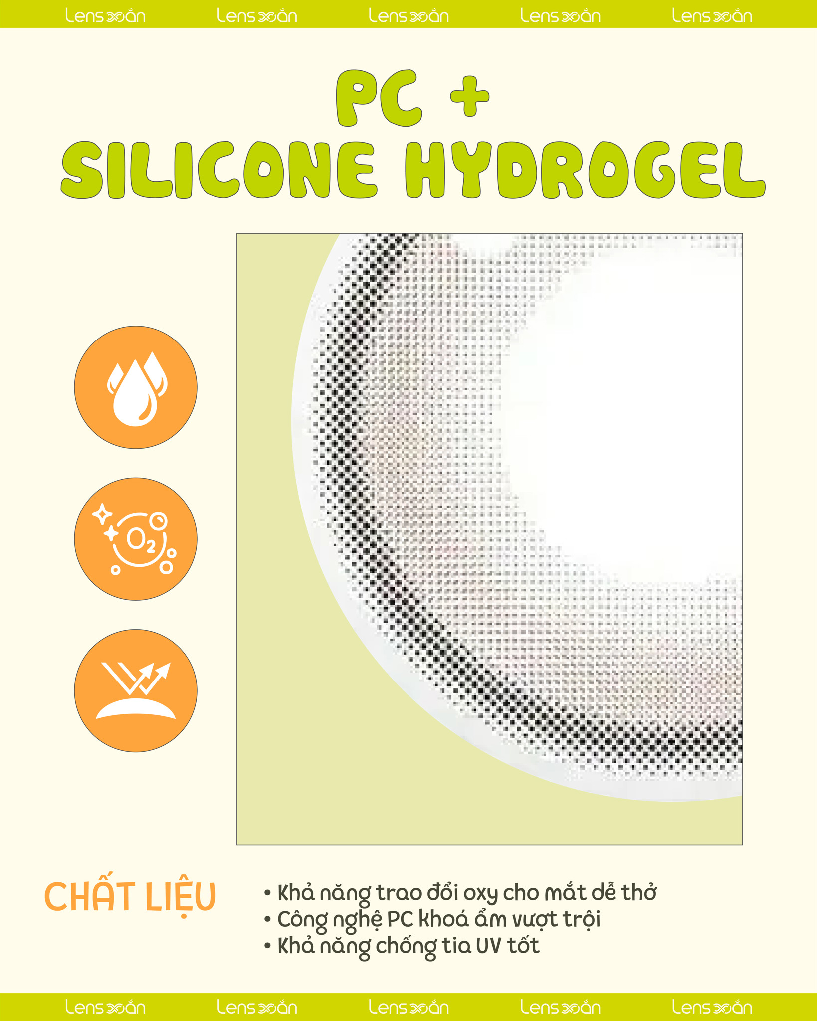 Tích hợp 2 chất liệu cao cấp PC + Silicone Hydrogel giúp khóa ẩm tốt, trao đổi oxy vượt trội và chống tia UV hiệu quả. Phù hợp mọi loại mắt, kể cả mắt nhạy cảm vẫn đeo thoải mái cả ngày dài.