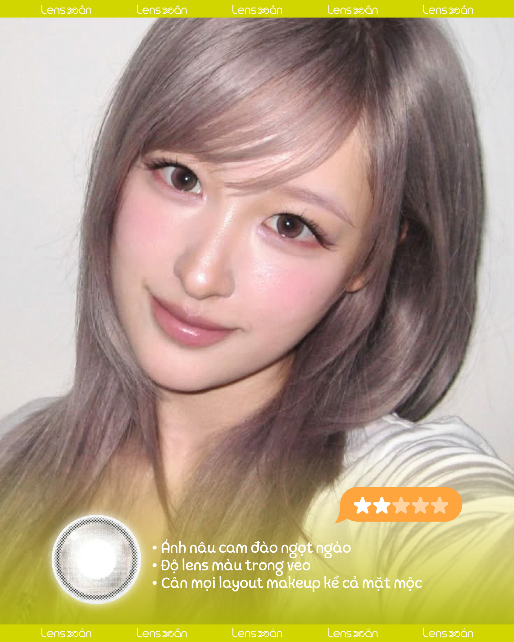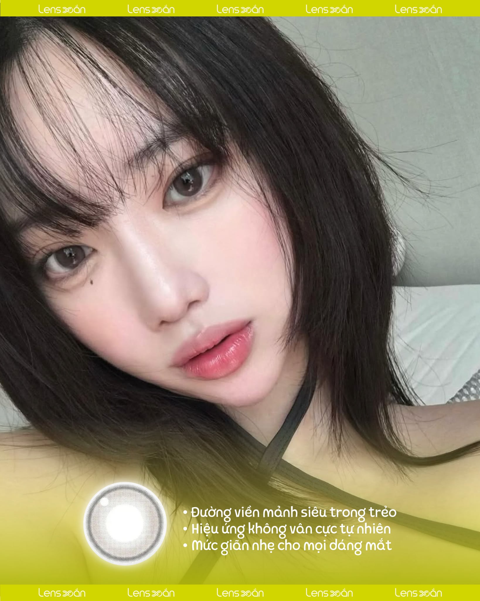 Thiết kế vân lens siêu basic, gần như không vân và chỉ có viền mờ nhẹ nhàng – chính điều này tạo nên sự trong veo đặc trưng. Mức giãn quốc dân G.DIA 13.2mm | DIA 14.2mm fit vừa đẹp với mọi dáng mắt, cực kỳ xinh yêu.