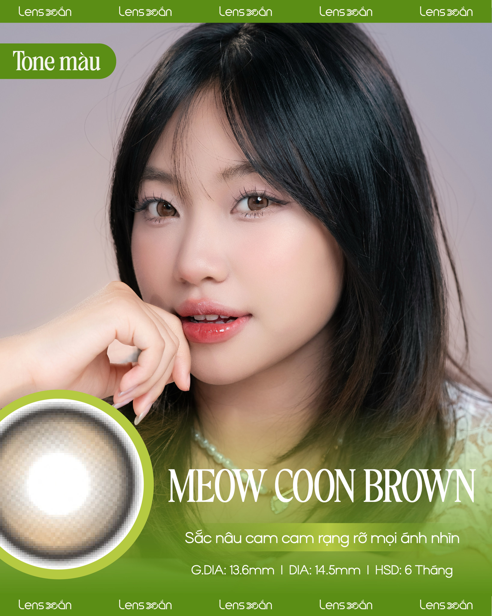 𝐌𝐞𝐨𝐰 𝐂𝐨𝐨𝐧 𝐁𝐫𝐨𝐰𝐧 với sắc nâu cam nhẹ nhàng, dễ dàng hòa quyện với mọi phong cách trang điểm, từ tự nhiên, nhẹ nhàng cho đến cá tính, nổi bật. Đặc biệt, khi kết hợp với lens 𝐌𝐞𝐨𝐰 𝐂𝐨𝐨𝐧 𝐁𝐫𝐨𝐰𝐧, việc lựa chọn màu sắc trang điểm rất quan trọng để tạo nên một tổng thể hài hòa. Hãy chọn những tông màu nhẹ nhàng, tự nhiên nhưng vẫn có chiều sâu như nâu, hồng đất hoặc cam pastel để tạo điểm nhấn cho đôi mắt.