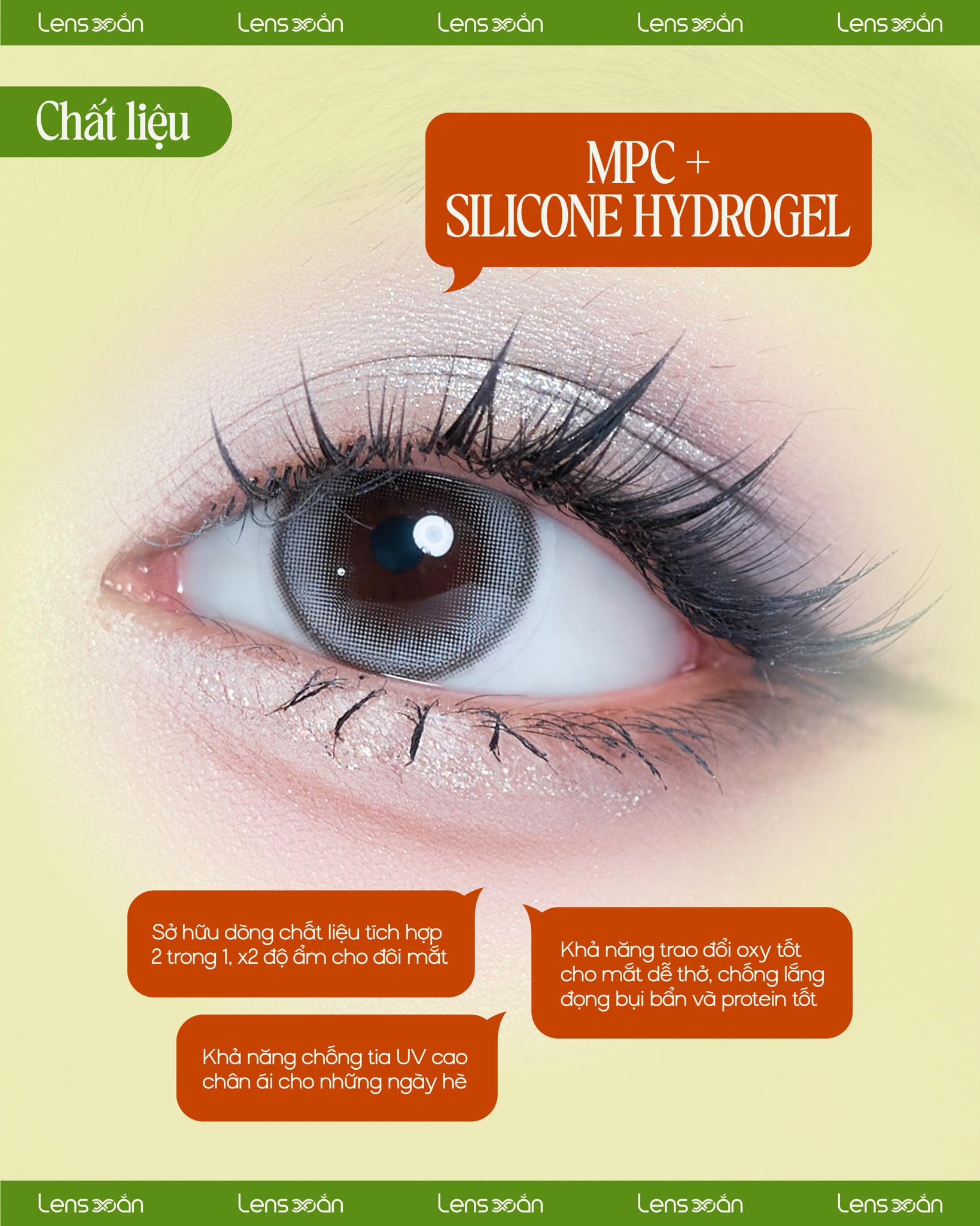 Được sản xuất bằng công nghệ tiên tiến cùng chất liệu cao cấp từ MPC Polymer và silicone hydrogel, sản phẩm cung cấp độ ẩm lý tưởng và khả năng trao đổi oxy tối ưu, đảm bảo sự thoải mái khi sử dụng cả ngày dài. Đặc biệt, tính năng loại bỏ bụi bẩn và protein hiệu quả giúp lens trở thành lựa chọn an toàn cho những ai có đôi mắt nhạy cảm.