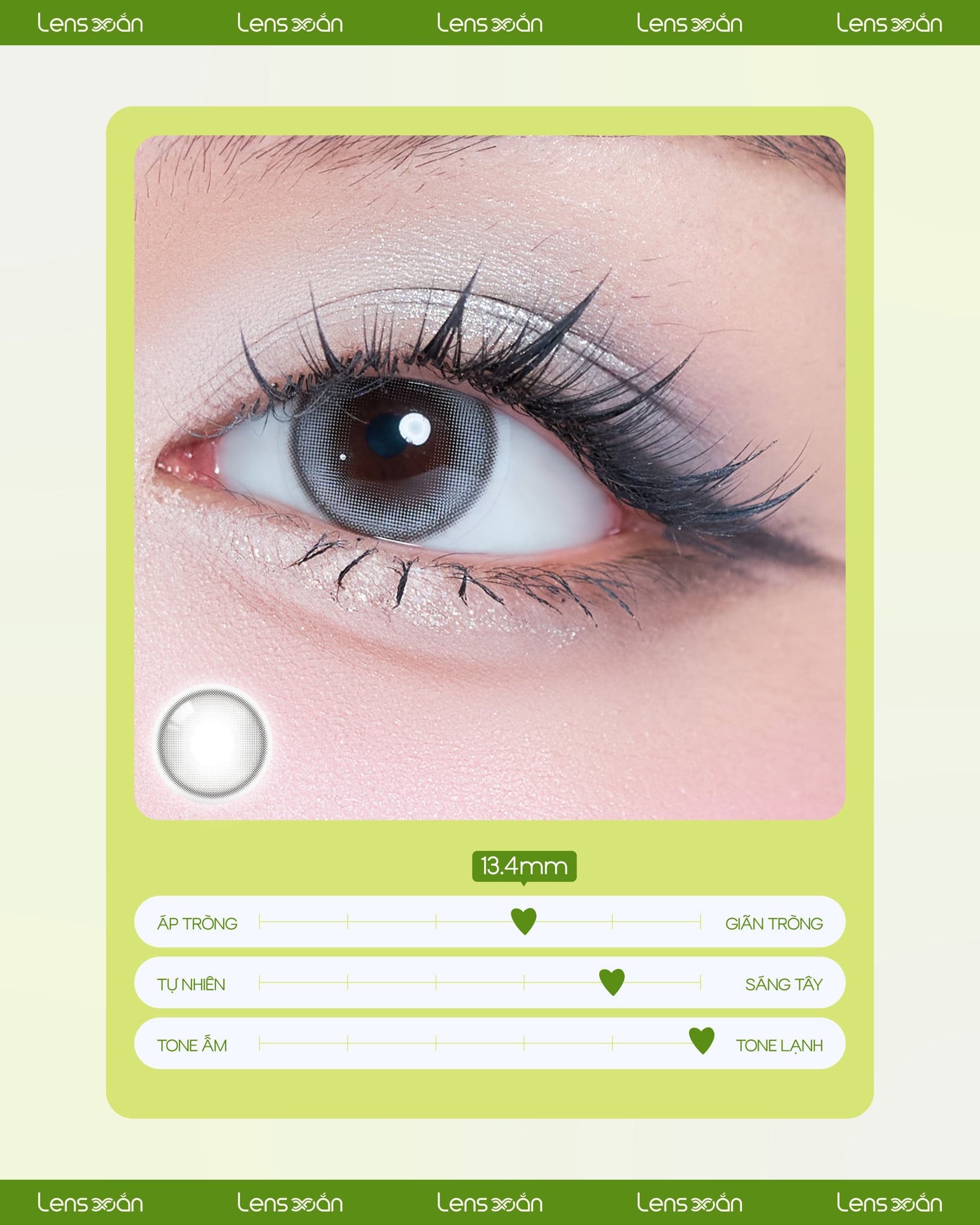Thiết kế chuyển sắc giữa hai tông màu xám và xanh pastel nhẹ nhàng mang đến cho đôi mắt một vẻ đẹp bí ẩn, quyến rũ, cùng ánh sáng dịu nhẹ nhờ vào x4 dải highlight tinh tế như một viên pha lê long lanh trong mắt bạn.