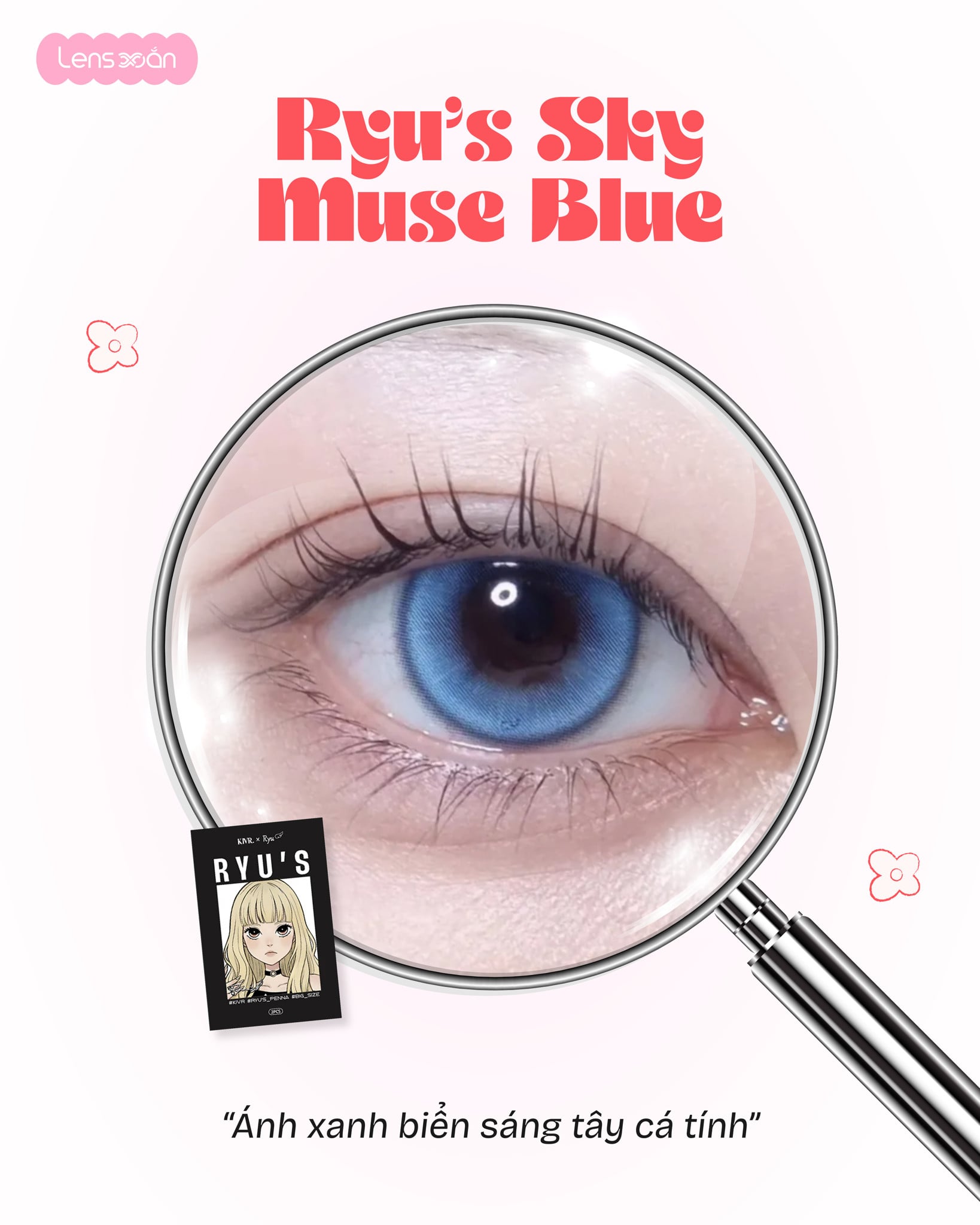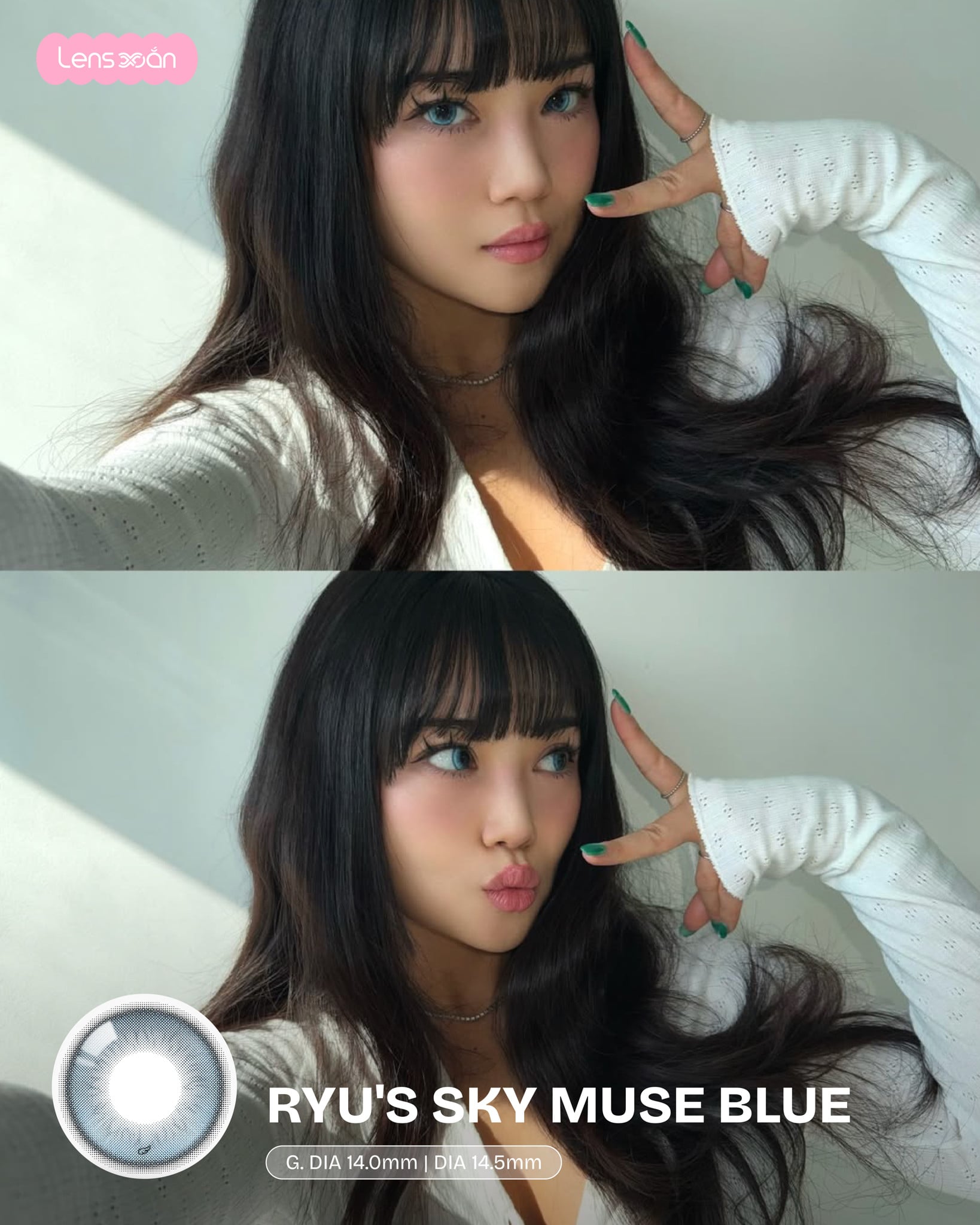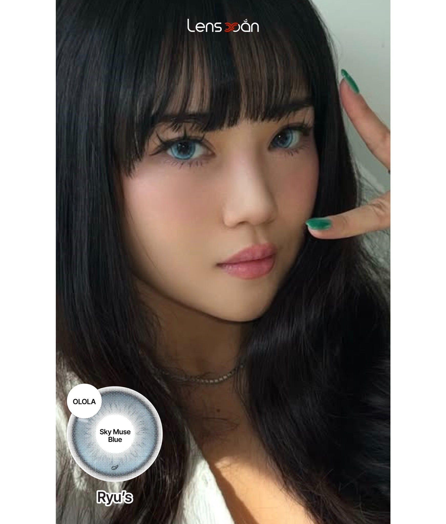 Gam màu xanh của RYU'S SKY MUSE BLUE – OLOLA được thiết kế nổi bật nhưng vẫn giữ độ trong vừa phải, tạo hiệu ứng ánh mắt sáng và có chiều sâu. Khi lên mắt, sắc xanh giúp ánh nhìn trở nên cuốn hút và nổi bật hơn so với các tone lens tự nhiên thông thường, rất phù hợp cho những ai yêu thích phong cách trang điểm cá tính hoặc muốn tạo điểm nhấn mạnh cho khuôn mặt.