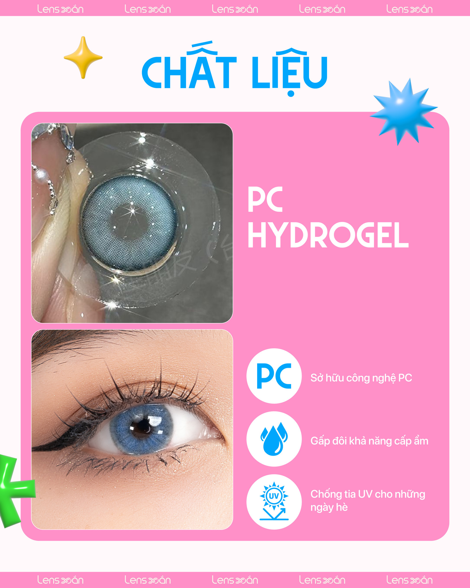 Với chất liệu PC Hydrogel Các nàng có thể đeo lên tới 5-6 tiếng một ngày mà vẫn thấy thoải mái, và mình có thể đeo lên tới 7-8 tiếng nếu có thêm nước nhỏ mắt chuyên dụng cho lens.
