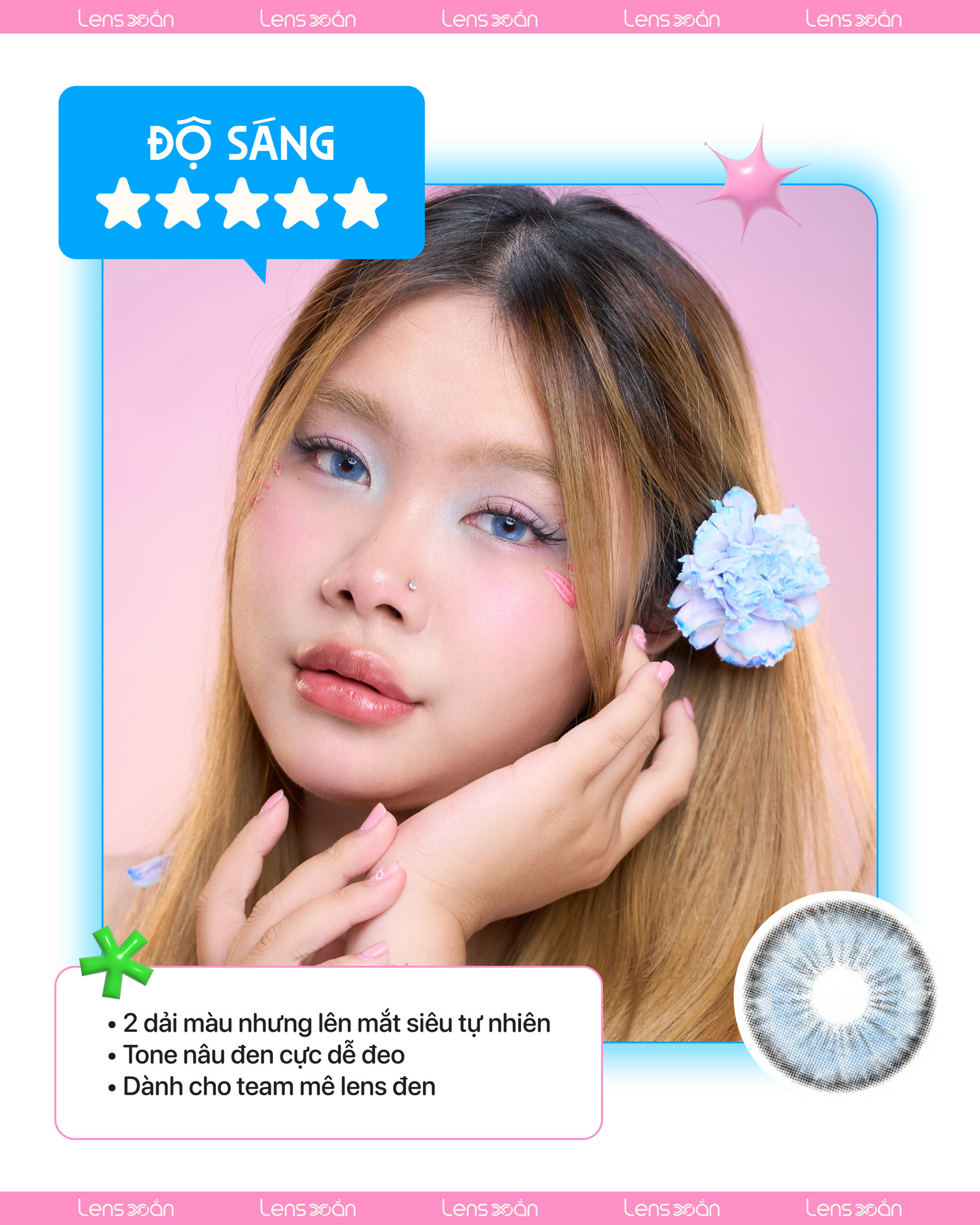 Phần viền đen xung quanh lên mắt vừa phải vẫn tạo độ to tròn cho đôi mắt kết hợp cùng đường kính phần màu 𝐆.𝐃𝐈𝐀 𝟏𝟑.𝟓𝐦𝐦 quá chuẩn combo cho các cô nàng yêu thích lens sáng tây tôn makeup.
