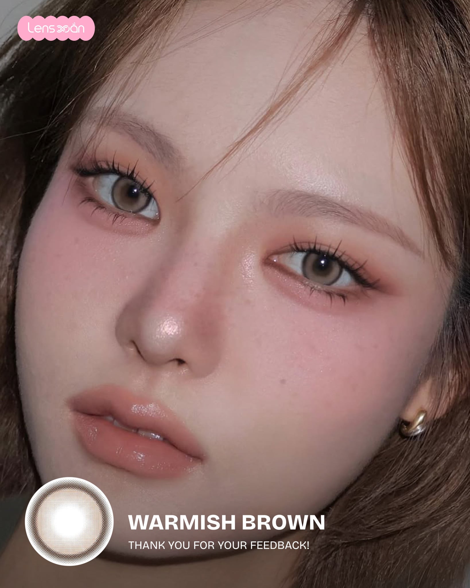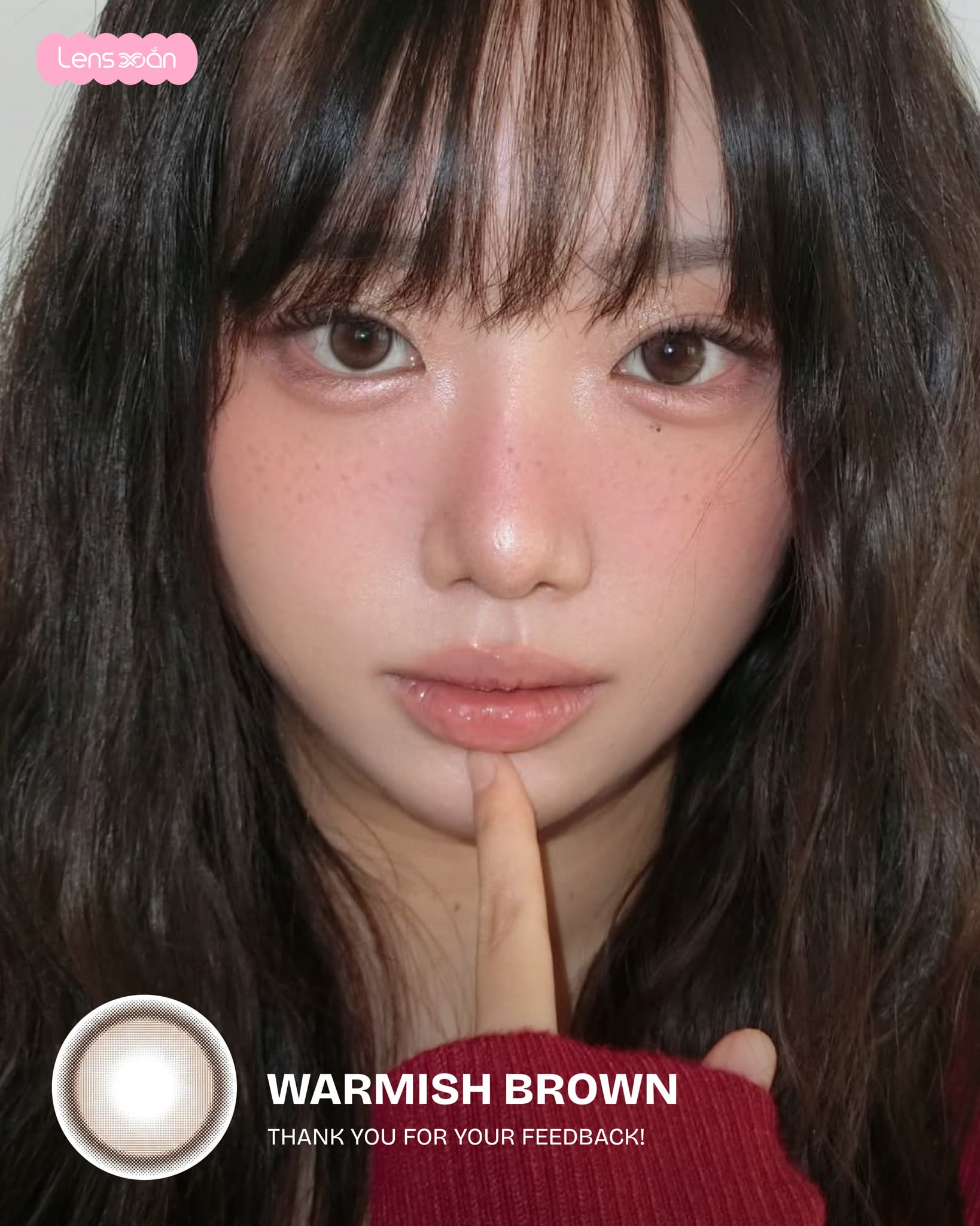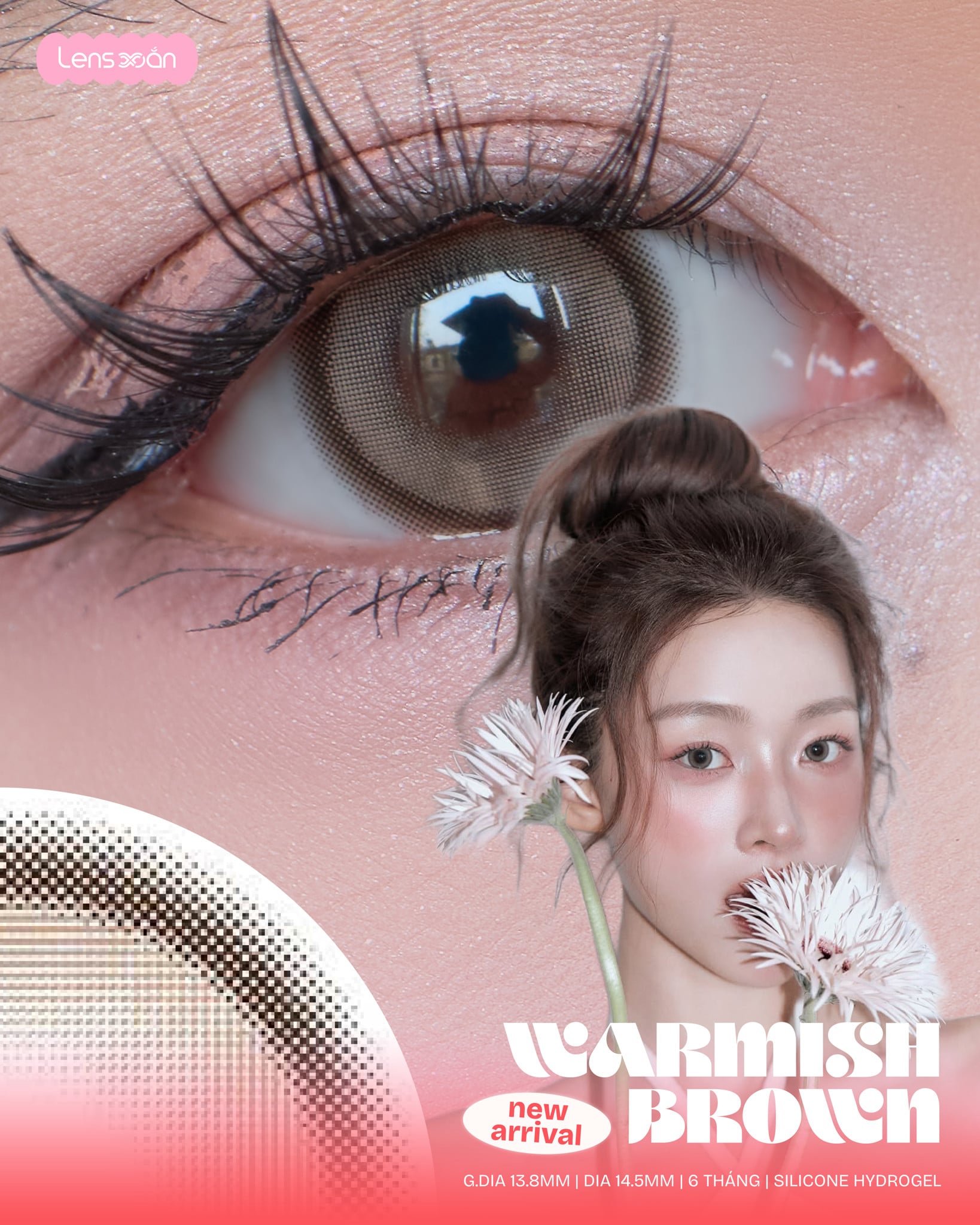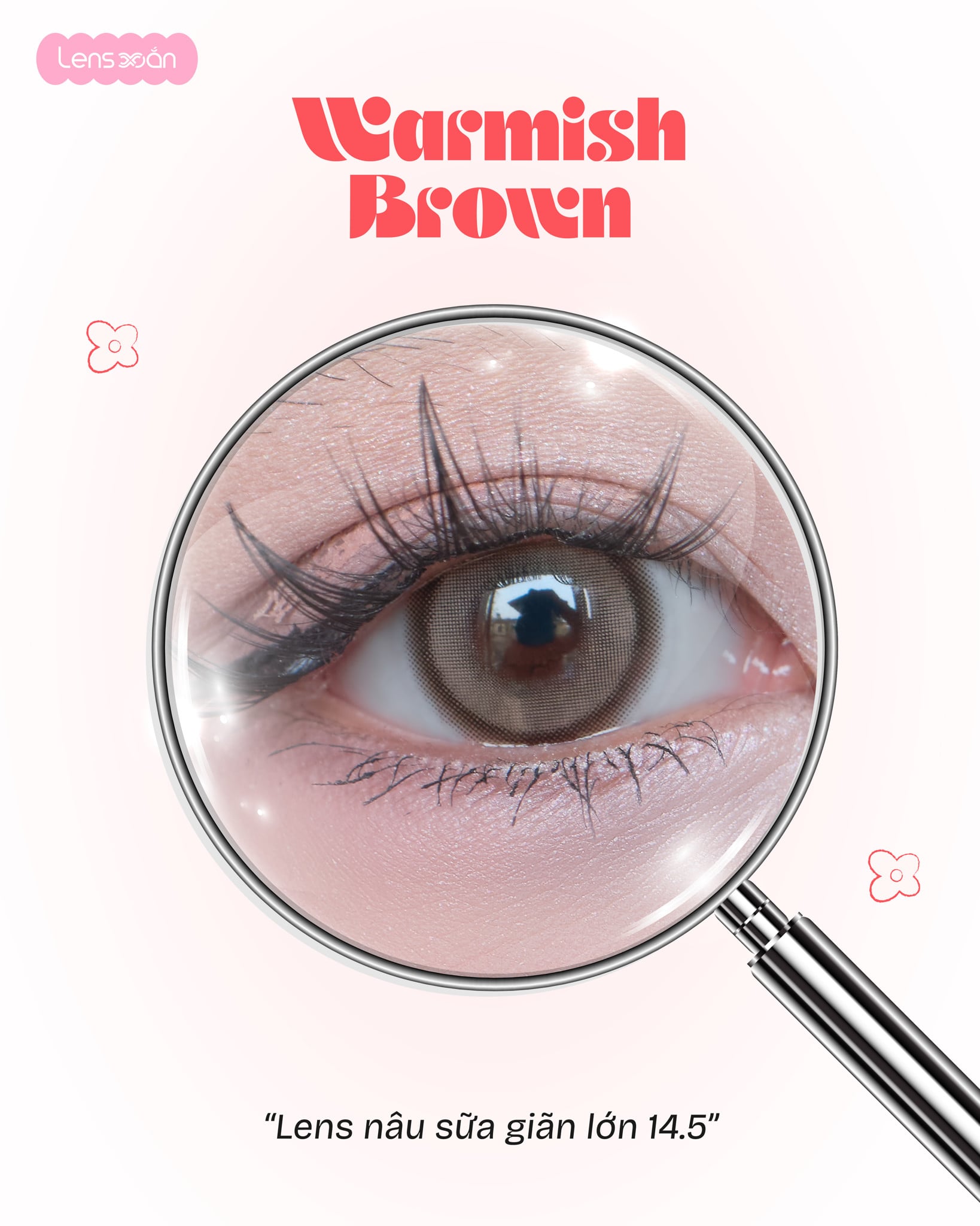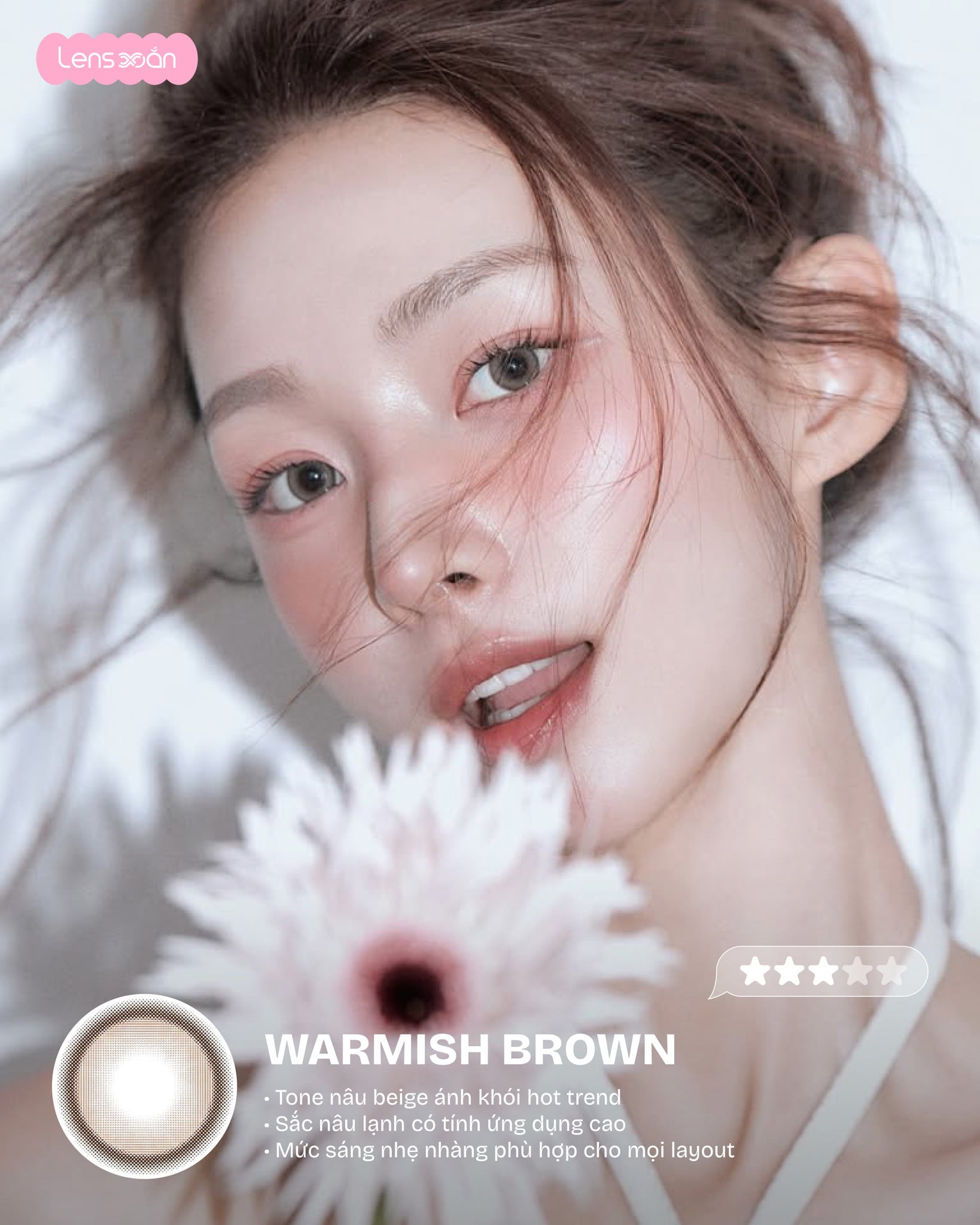 Với Graphic DIA 13.8 mm cùng DIA 14.5 mm , WARMISH BROWN – B.S.COR mang lại hiệu ứng hack size mắt rõ rệt, giúp mắt trông to hơn, tròn hơn mà vẫn hài hòa với tổng thể khuôn mặt. Đây là lựa chọn cực kỳ phù hợp cho những bạn thích lens giãn to, mắt búp bê nhưng vẫn muốn giữ nét tự nhiên, dễ ứng dụng trong đời sống hằng ngày.